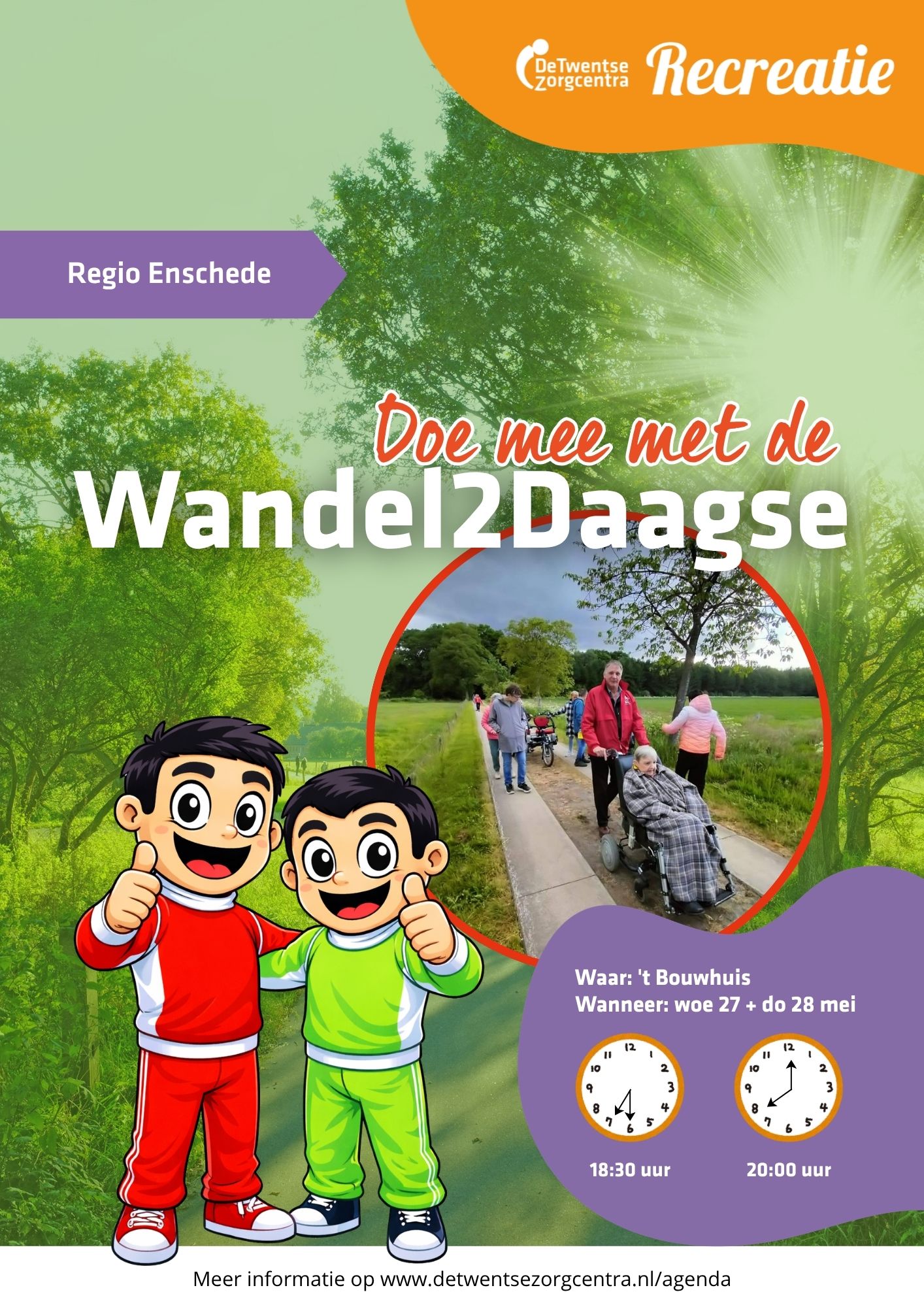 Ook dit jaar wordt de Wandel2Daagse weer een gezellige activiteit vol beweging en muziek. Samen genieten, lekker naar buiten en actief bezig zijn!