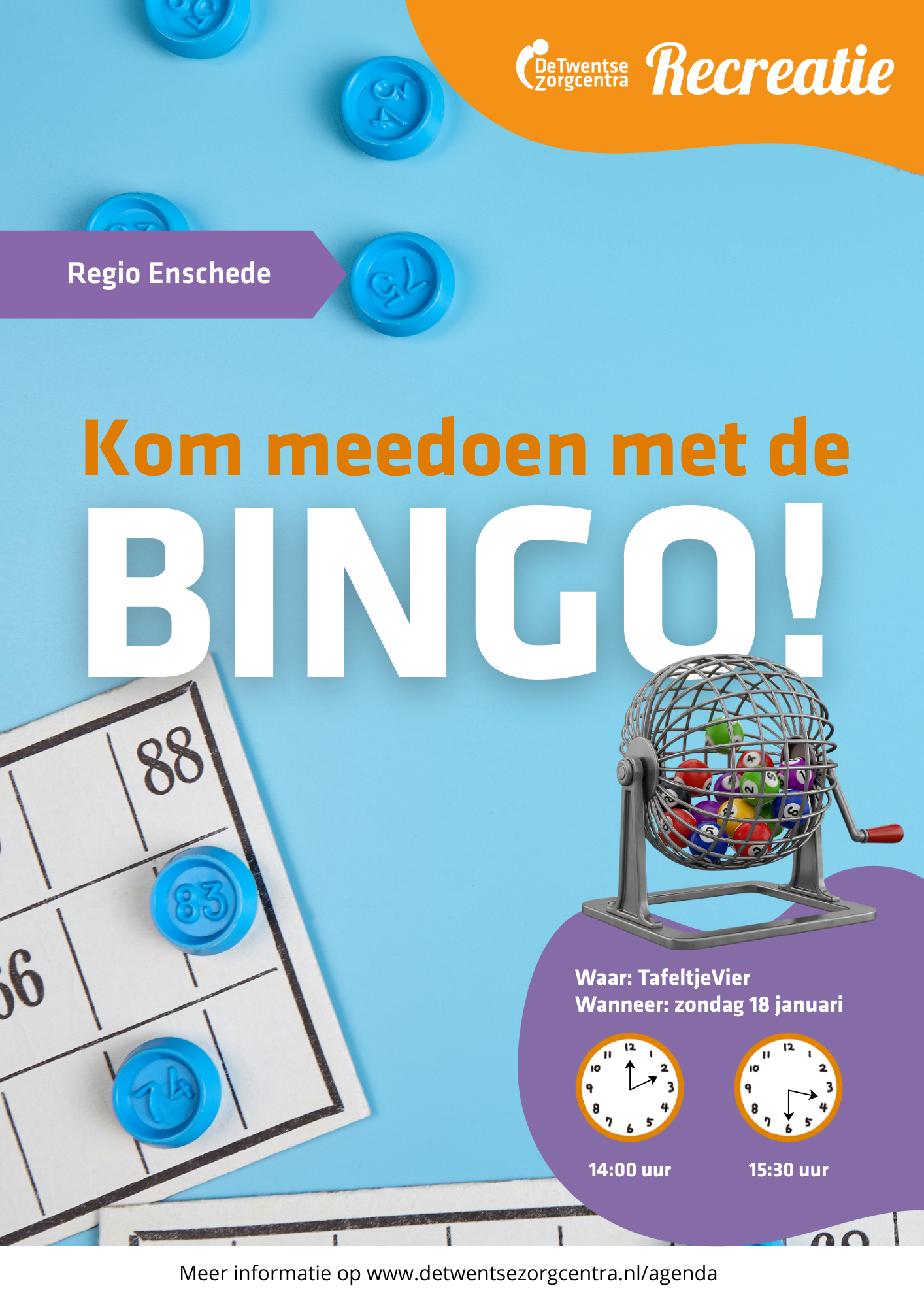 Op zondagmiddag 18 januari is het tijd voor een gezellige middag BINGO! Gezellig om met de groep te komen, maar ook een leuke activiteiten voor verwanten en bewoners.