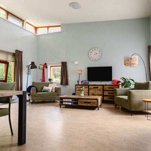 De woning is op maat gemaakt om je met een rolstoel te kunnen bewegen door de woning. Er zijn grote deuren en brede gangen. Ook zijn er til- en hulpmiddelen, zoals een hoog-laag bad en snoezelmateriaal.